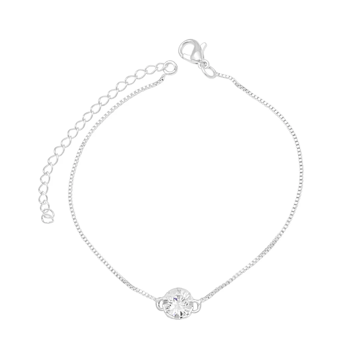 Pulseira Pedra Redonda Ponto de Luz Central Zircônia Banhado a Prata 1000